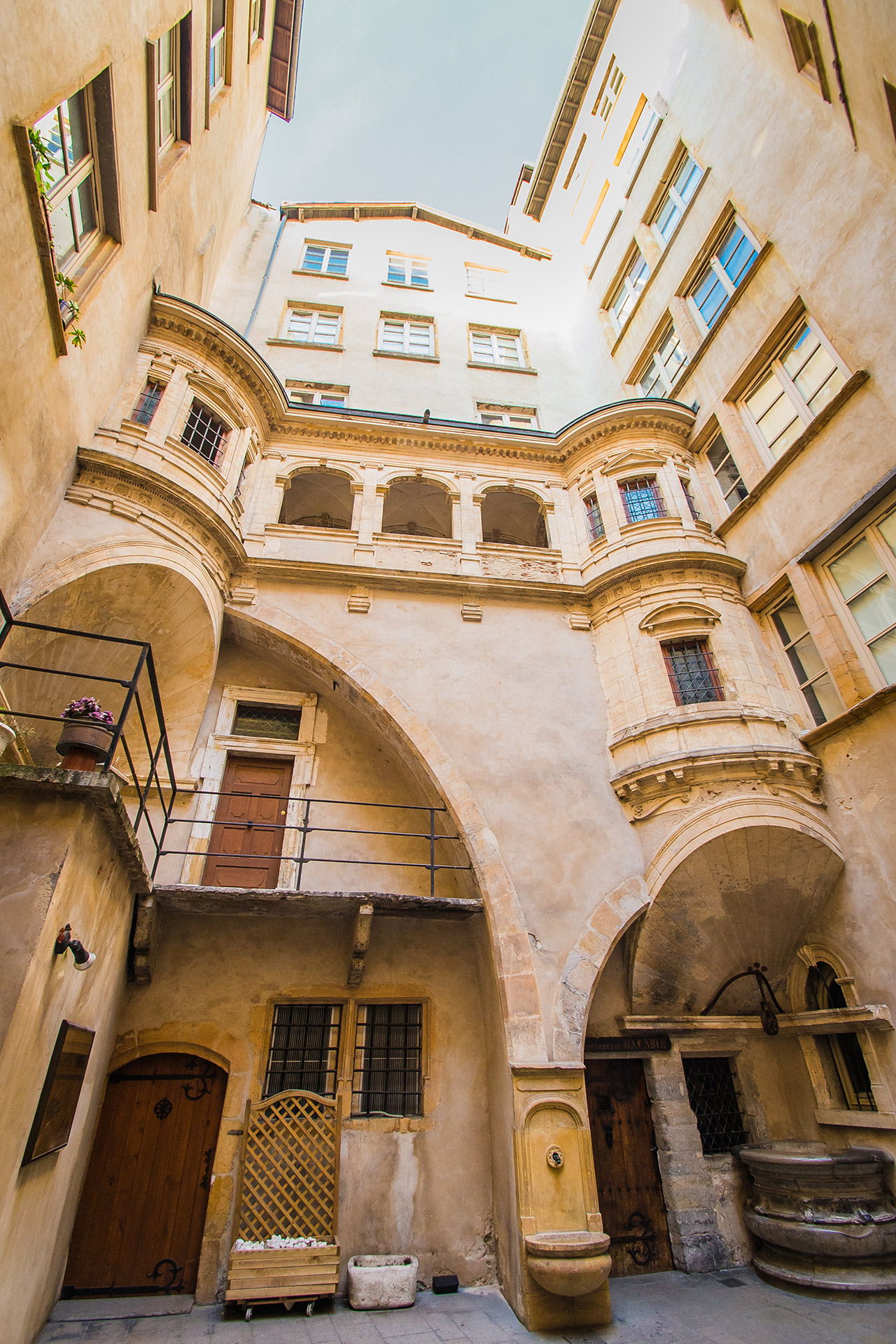 Am Fuß des Hügels dann die Altstadt Vieux-Lyon, ein Stadtviertel zwischen Mittelalter und Renaissance, dass sich von Saint-Georges (im Süden) bis Saint-Paul (im Norden) erstreckt, dazwischen die unumgängliche Kathedrale Saint-Jean. Sie allein bietet einen Querschnitt durch alle aufeinanderfolgenden Epochen von der Spätromanik bis zur Gotik (von der primitiven über die strahlende bis zur flamboyanten!). Schlendern Sie durch dieses charmante Viertel und passieren Sie dabei auch einige traboules. Dabei entdecken Sie wunderschöne Innenhöfe mit italienischen Arkaden, Brunnen und Spiraltreppentürmen...